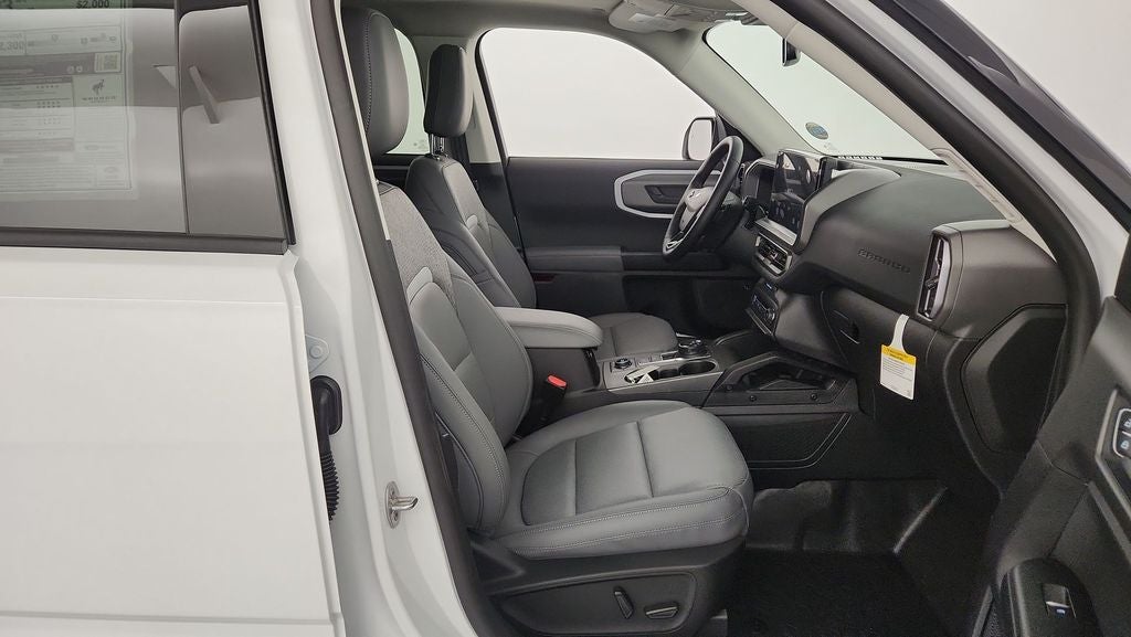 This 2025 Ford Bronco Sport Badlands is equipped with a. EcoBoost 2.0L I4 GTDi DOHC Turbocharged VCT heated leather seats, navigation, moonroof, rear view camera, blind spot monitoring, lane departure warning, adaptive cruise control, power seats with driver's memory seat, remote start, push button start, dual zone climate control, Sync4 voice activation, Bluetooth®, power windows and locks, cruise control, steering wheel audio controls, satellite radio, 17 aluminum wheels and more.