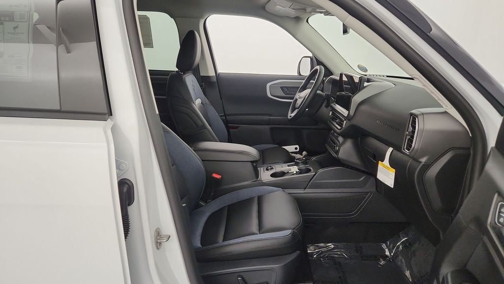 This 2025 Ford Bronco Sport Outer Banks is equipped with a. 1.5L EcoBoost heated leather seats, rear view camera, blind spot monitoring, adaptive cruise control, power seats with driver's memory seat, remote start, push button start, dual zone climate control, Sync4 voice activation, Bluetooth®, power windows and locks, cruise control, steering wheel audio controls, satellite radio, 18 aluminum wheels and more.