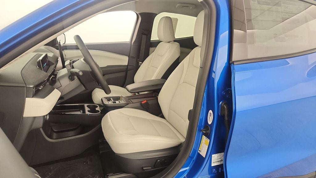 This 2025 Ford Mustang Mach-E Premium is equipped with a Dual Electric Motor, heated and cooled leather seats, navigation, rear view camera, blind spot monitoring, lane departure warning, adaptive cruise control, power liftgate, front and rear parking sensors, power seats with driver's memory seat, remote start, push button start, dual zone climate control, Sync4 voice activation, Bluetooth®, power windows and locks, cruise control, steering wheel audio controls, satellite radio, 19 aluminum wheels and more.