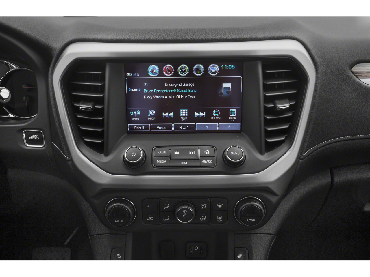 - Audio system, 8" diagonal Color Touch Screen Navigation with GMC Infotainment System, AM/FM/SiriusXM USB ports, auxiliary jack, Bluetooth streaming audio for music and most phones, advanced phone integration featuring Apple CarPlay, Android Auto and voice-activated technology for radio and phone