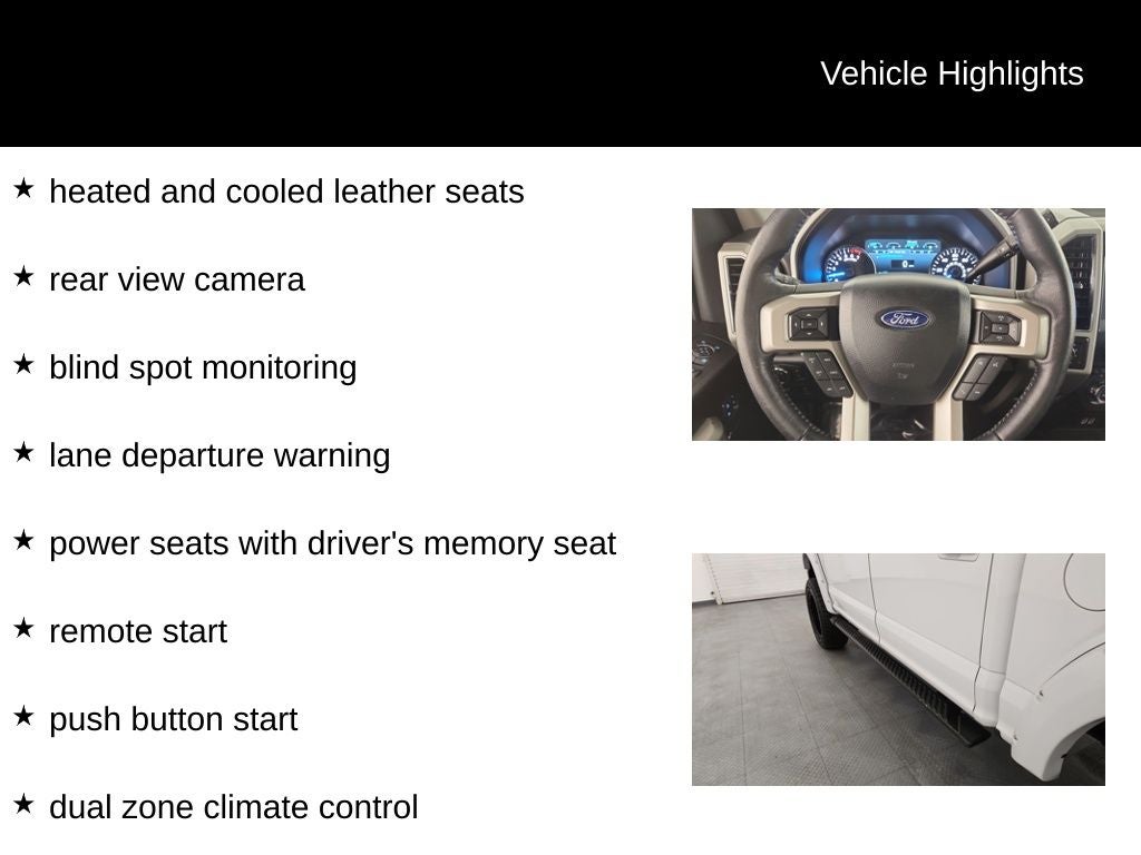 This 2020 Ford F-150 Lariat has a clean Carfax. It's equipped with a 5.0L V8, heated and cooled leather seats, rear view camera, blind spot monitoring, lane departure warning, power seats with driver's memory seat, remote start, push button start, dual zone climate control, Sync 3 voice activation with 8 touch screen, 18 aluminum wheels and more.