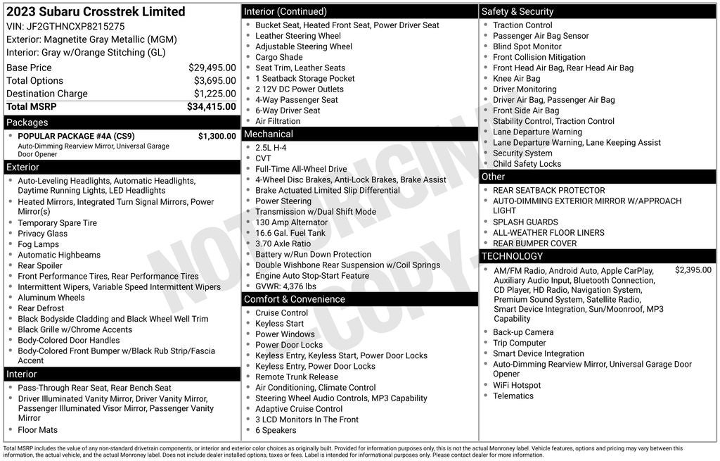 - Vehicle Name: Subaru Crosstrek